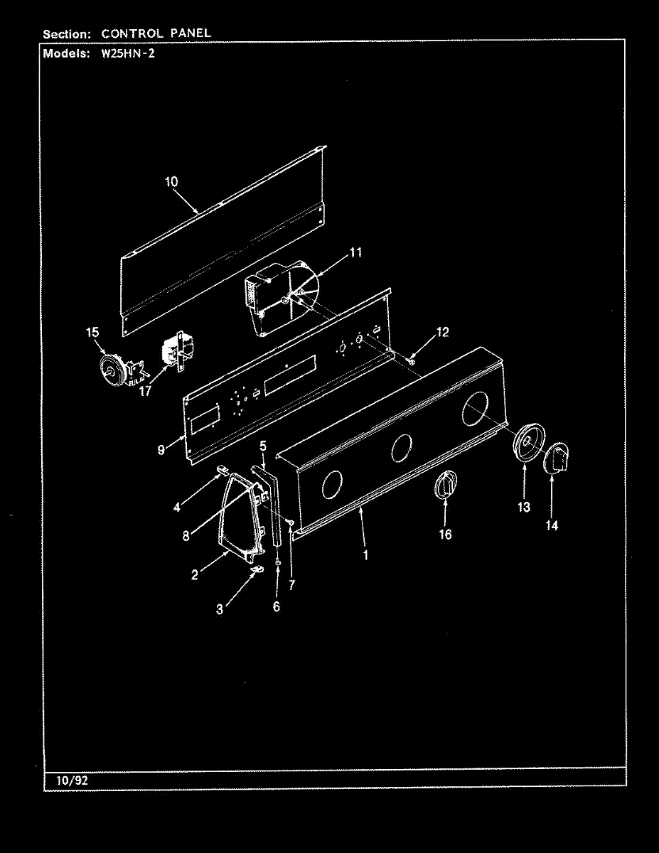 Parts for Magic Chef W25HA2: 06 - Control Panel (Rev. G-L) Parts