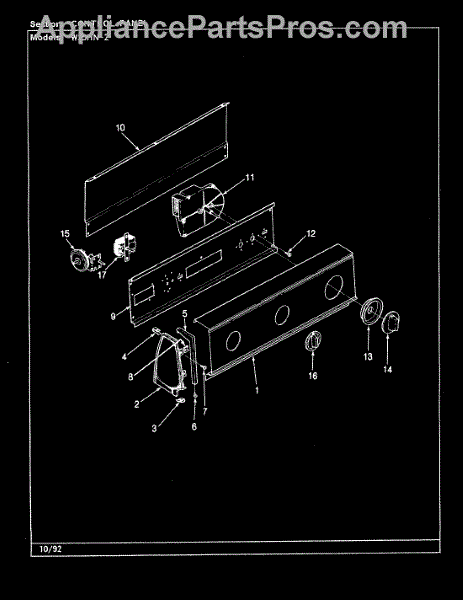 Parts for Magic Chef W25HN2: 06 - Control Panel (Rev. G-L) Parts