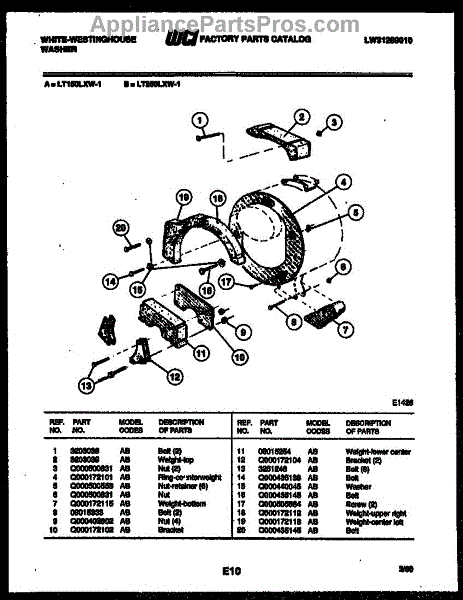 Parts for Frigidaire LT150LXD1: 06 - Counterweights Parts