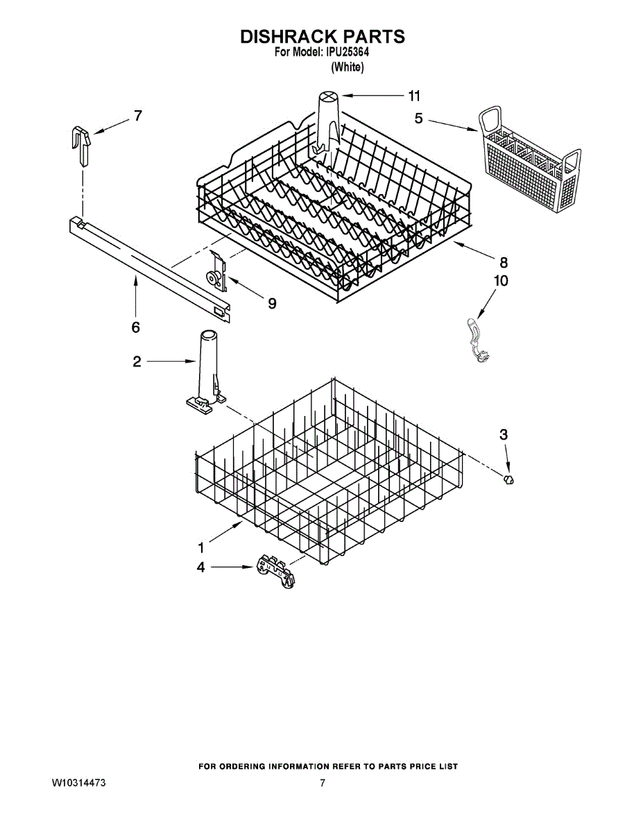 This dishwasher silverware basket fits in the lower rack to hold and organize utensils during the wash. Replace a cracked, warped, or missing basket to keep flatware upright and prevent pieces from slipping through or rattling loose.