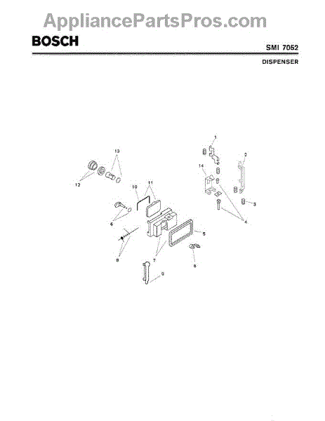 Parts for Bosch SMI7052 US/09 (FD 7210-): 06 - Dispenser Parts