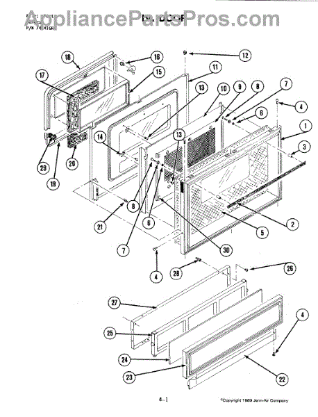 This factory screw secures appliance components to their mounting points. Replace missing, worn, or stripped hardware to restore a tight fit, proper alignment, and quieter operation across the affected assembly.