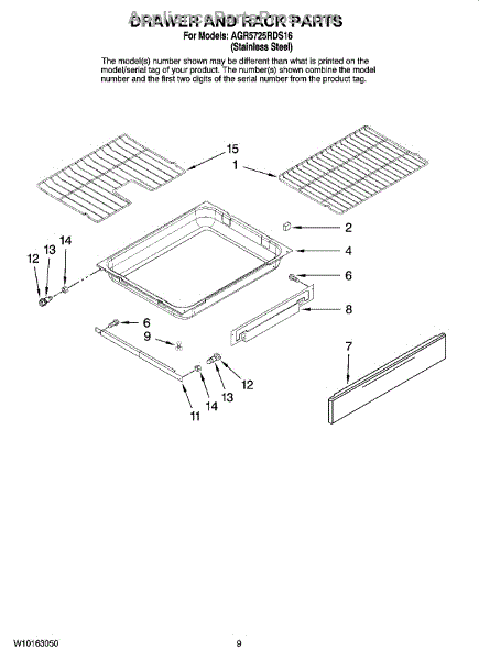 This drawer roller supports and guides the lower range drawer so it slides smoothly on its track. Replacing a worn or broken roller restores easy operation and helps prevent the drawer from binding, sagging, or coming off the track.