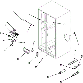 The Water Filter Head and Tube Assembly is an OEM part for Whirlpool refrigerators. It is located inside the refrigerator, near the upper corner, or on the rear wall. It houses the water filter and serves as the connection point between the filter and the water line.