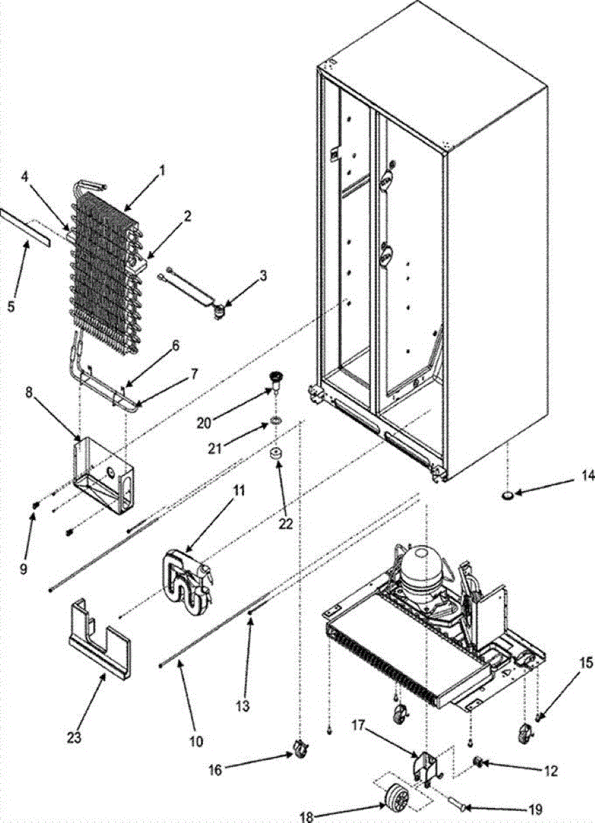 This cabinet roller bracket assembly restores smooth movement and solid support at the base of your unit. It bears the cabinet's weight, provides leveling adjustment, and lets the appliance roll for easier placement, cleaning, and service.