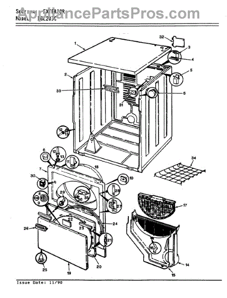 Parts for Norge DGL203WC: 06 - Exterior (Orig. Rev. A-D) Parts