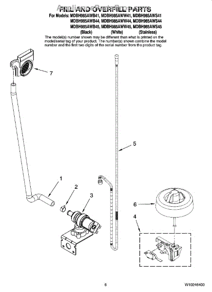Parts for Maytag MDBH985AWB45: 06 - Fill And Overfill Parts