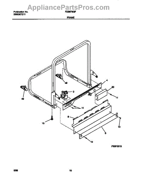 The Side Mount Kit is an OEM replacement part for Frigidaire dishwashers. It contains mounting brackets, screws, and other hardware required to securely install the dishwasher against cabinetry in a side-by-side configuration. Proper attachment is necessary for stability and safety during operation.
