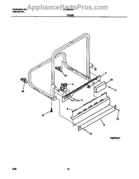 The Side Mount Kit is an OEM replacement part for Frigidaire dishwashers. It contains mounting brackets, screws, and other hardware required to securely install the dishwasher against cabinetry in a side-by-side configuration. Proper attachment is necessary for stability and safety during operation.