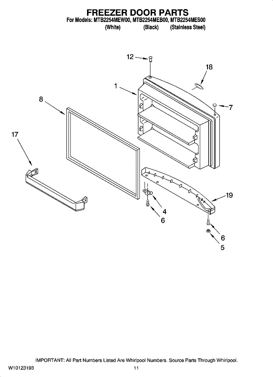 The Freezer Door Gasket (Black) is an OEM part for Whirlpool refrigerators. This part ensures an airtight seal around the freezer door. This gasket prevents warm air from entering and cold air from escaping the freezer compartment, playing a crucial role in maintaining the freezer's internal temperature. The gasket measures approximately 20.19” x 31.29”. Causes of a bad Freezer Door Gasket can include natural aging and wear over time, exposure to extreme temperatures that can degrade the material, and physical damage from cleaning or heavy use. Symptoms of a bad Freezer Door Gasket include: