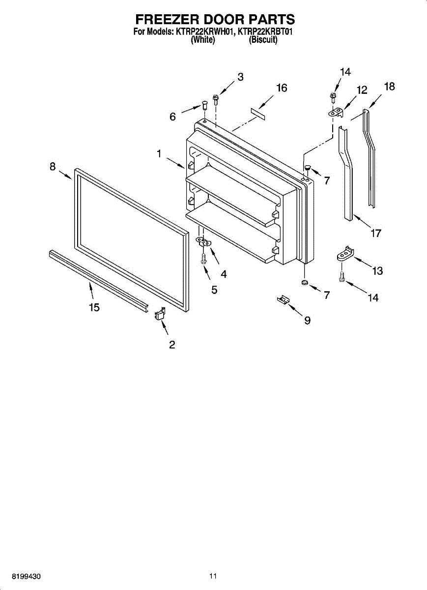 Parts for Kitchenaid KTRP22KRBT01: 06 - Freezer Door Parts, Optional Parts