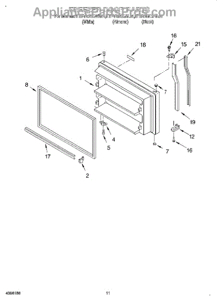 Seals freezer door to maintain temperature and efficiency. Replace if torn, cracked, or not sealing at corners. Confirm fit with your model number.