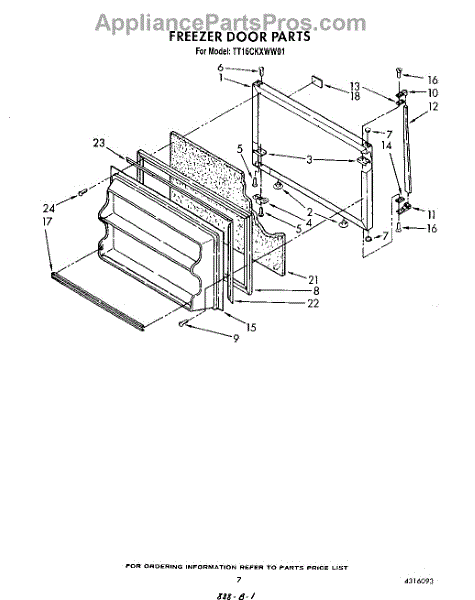 Parts for Whirlpool TT16CKXWN01: 06 - Freezer Door Parts