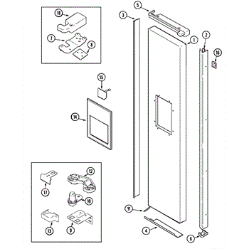 Upper hinge cover kit for refrigerators. Installs on top hinge assembly to conceal hardware. Replace if cracked, broken, or missing for a clean finish.