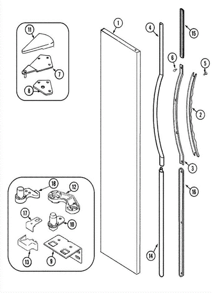 Mounting screw secures panels, brackets, and trim on refrigerators and washers. Replace when fasteners are missing, loose, stripped, or damaged.