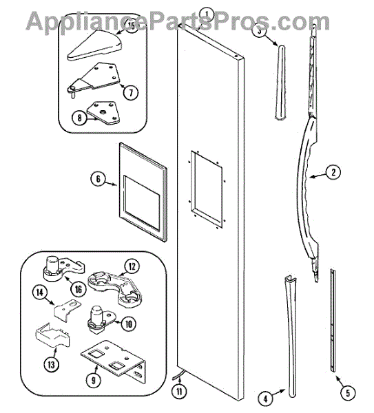Replaces worn or broken refrigerator door closer cam that installs at the bottom hinge. Restores smooth door action when the original is cracked or damaged.
