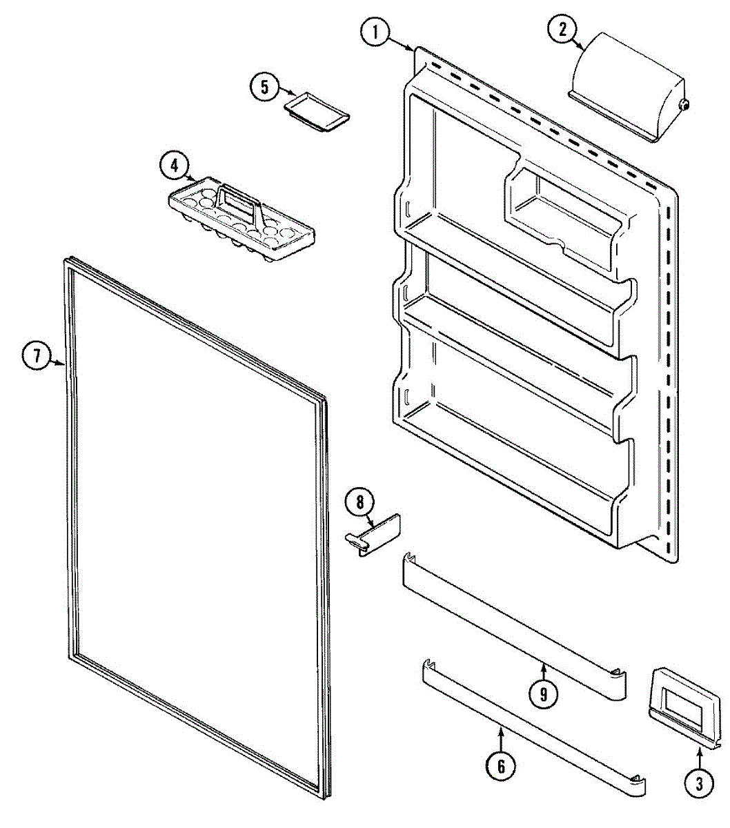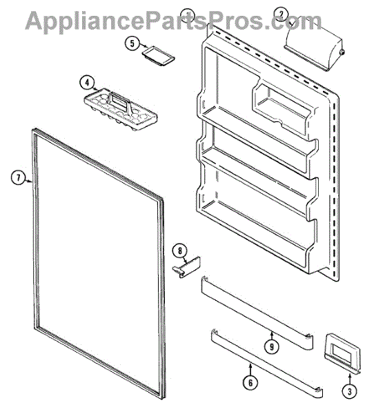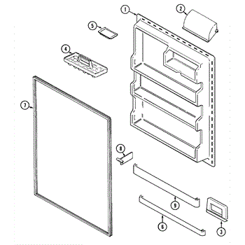 Secures items on refrigerator door shelves. Installs on the inner door to prevent contents from falling. Replace if cracked, broken, or missing.