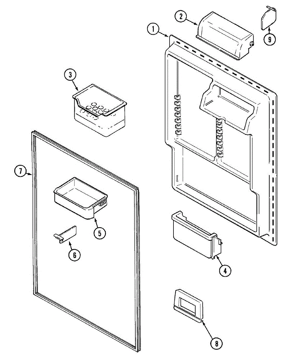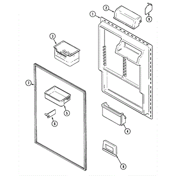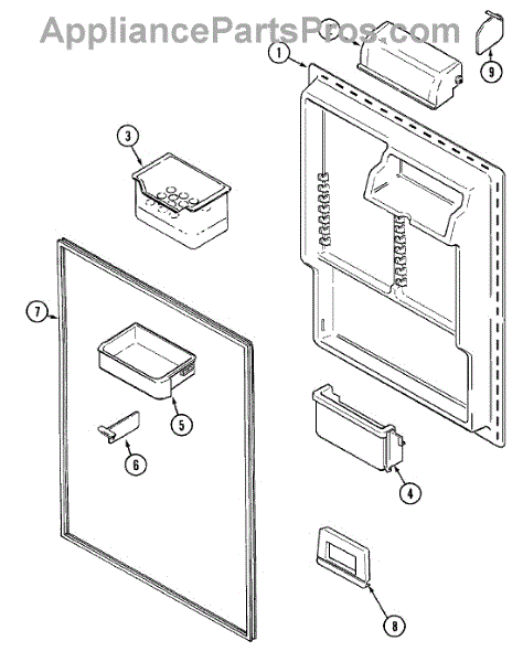 White plastic bucket stop for refrigerator door shelves. Replaces broken, cracked, or missing stops. Measures approximately 2/3" wide by 1/2" deep.