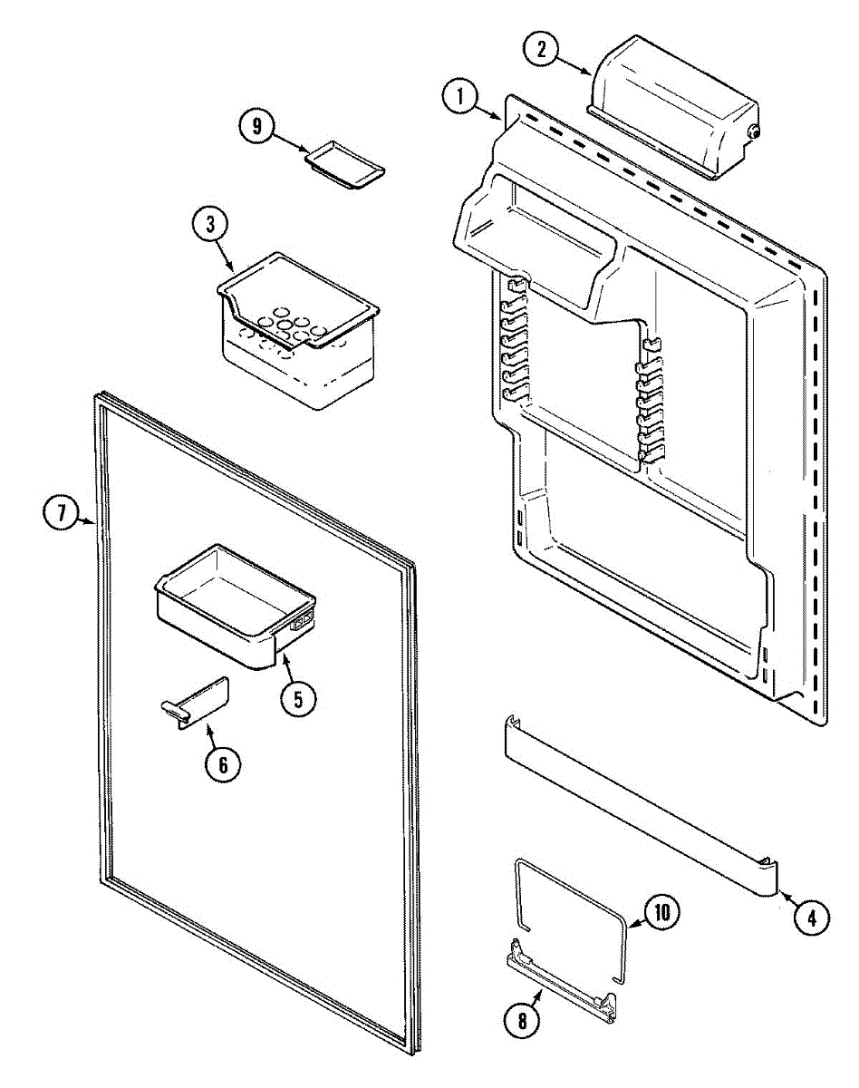 This is the front rail for a pick-off style door shelf bin. Replacing a cracked or missing front restores the bin's ability to hold bottles and jars securely on the refrigerator door.