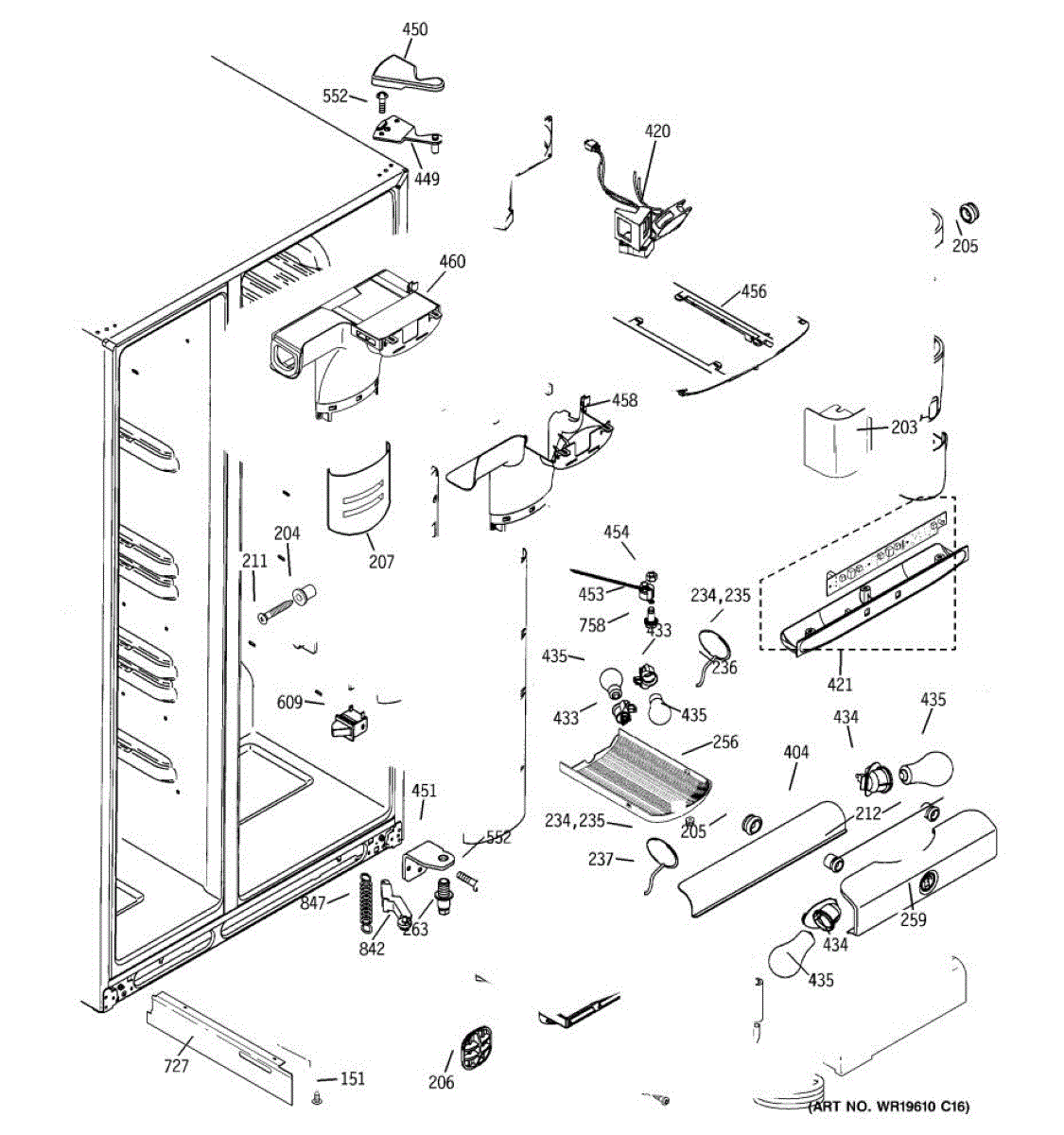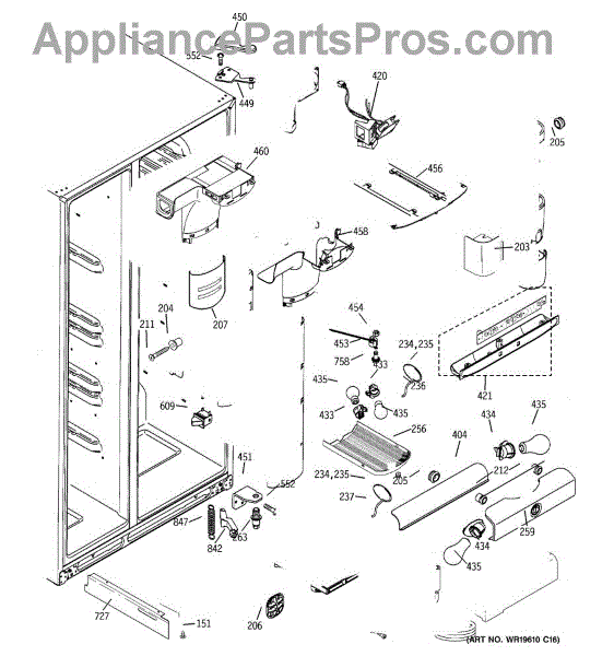 The Refrigerator Damper Assembly is an OEM part for GE refrigerators. It regulates the flow of cold air from the freezer compartment to the refrigerator, ensuring proper temperature control within the fridge.