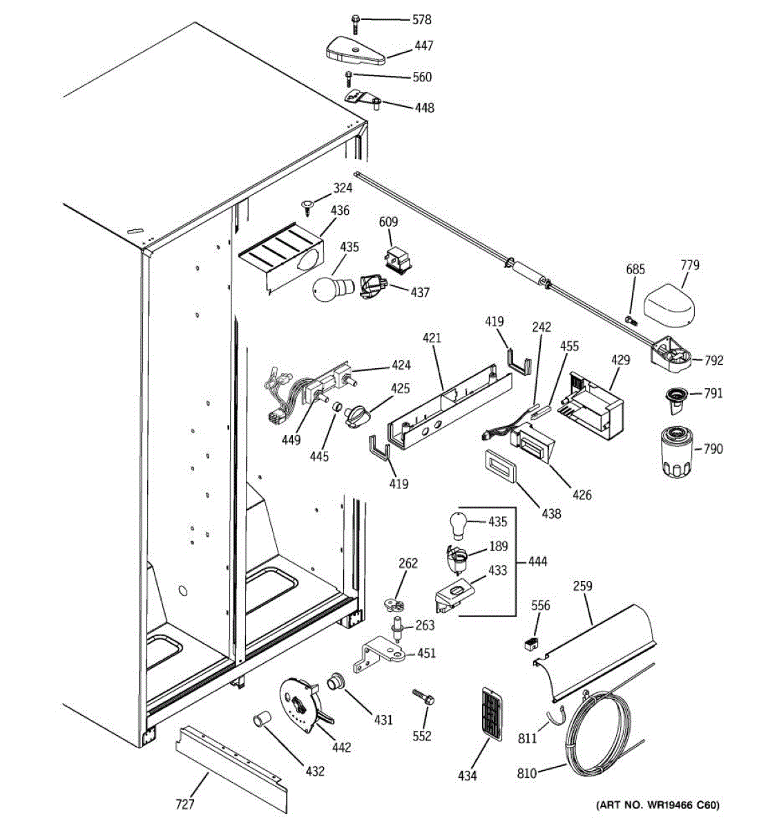 The cold water reservoir is an OEM replacement part for GE refrigerators. It serves a dual purpose, holding the supply of cold water needed for both the ice maker and water dispensing functions. This ensures that each ice cube is formed from chilled water and that cold water is always ready to be dispensed. Causes of a bad reservoir can include cracks, fractures, or leaks developing in the plastic over time due to repeated filling and draining. Mineral deposits or contamination of the water supply can also compromise performance. Symptoms of an issue include: