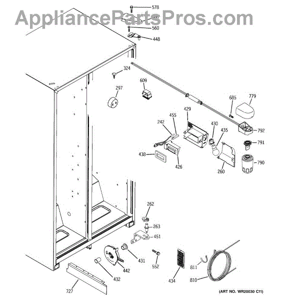 The cold water reservoir is an OEM replacement part for GE refrigerators. It serves a dual purpose, holding the supply of cold water needed for both the ice maker and water dispensing functions. This ensures that each ice cube is formed from chilled water and that cold water is always ready to be dispensed.