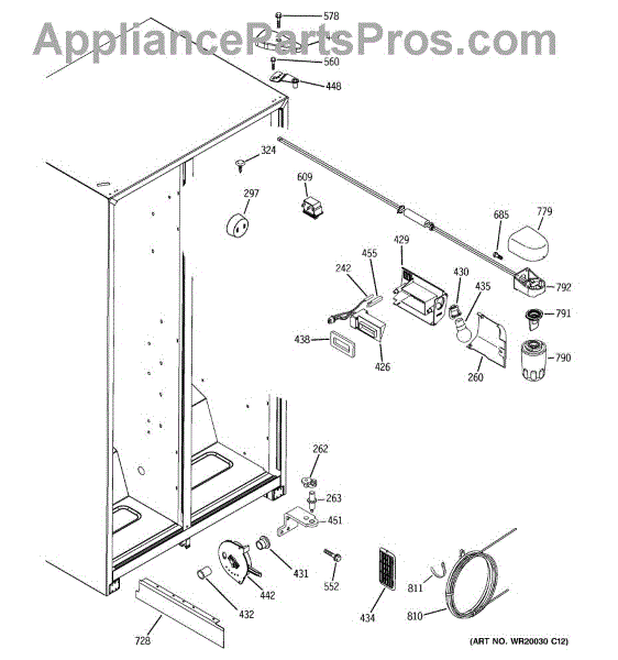 The cold water reservoir is an OEM replacement part for GE refrigerators. It serves a dual purpose, holding the supply of cold water needed for both the ice maker and water dispensing functions. This ensures that each ice cube is formed from chilled water and that cold water is always ready to be dispensed. Causes of a bad reservoir can include cracks, fractures, or leaks developing in the plastic over time due to repeated filling and draining. Mineral deposits or contamination of the water supply can also compromise performance. Symptoms of an issue include: