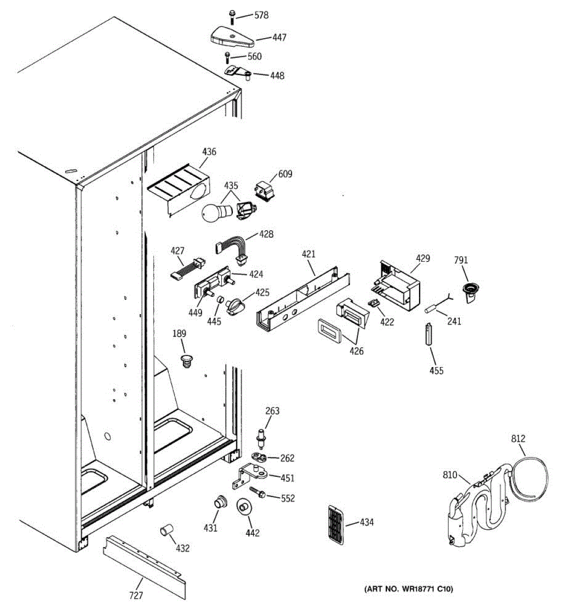 This assembly combines the refrigerator's internal water reservoir (tank) with its attached tubing to deliver chilled water to the dispenser. Replace a cracked or leaking tank to restore proper water flow and prevent leaks inside the fresh food compartment. What it does:
