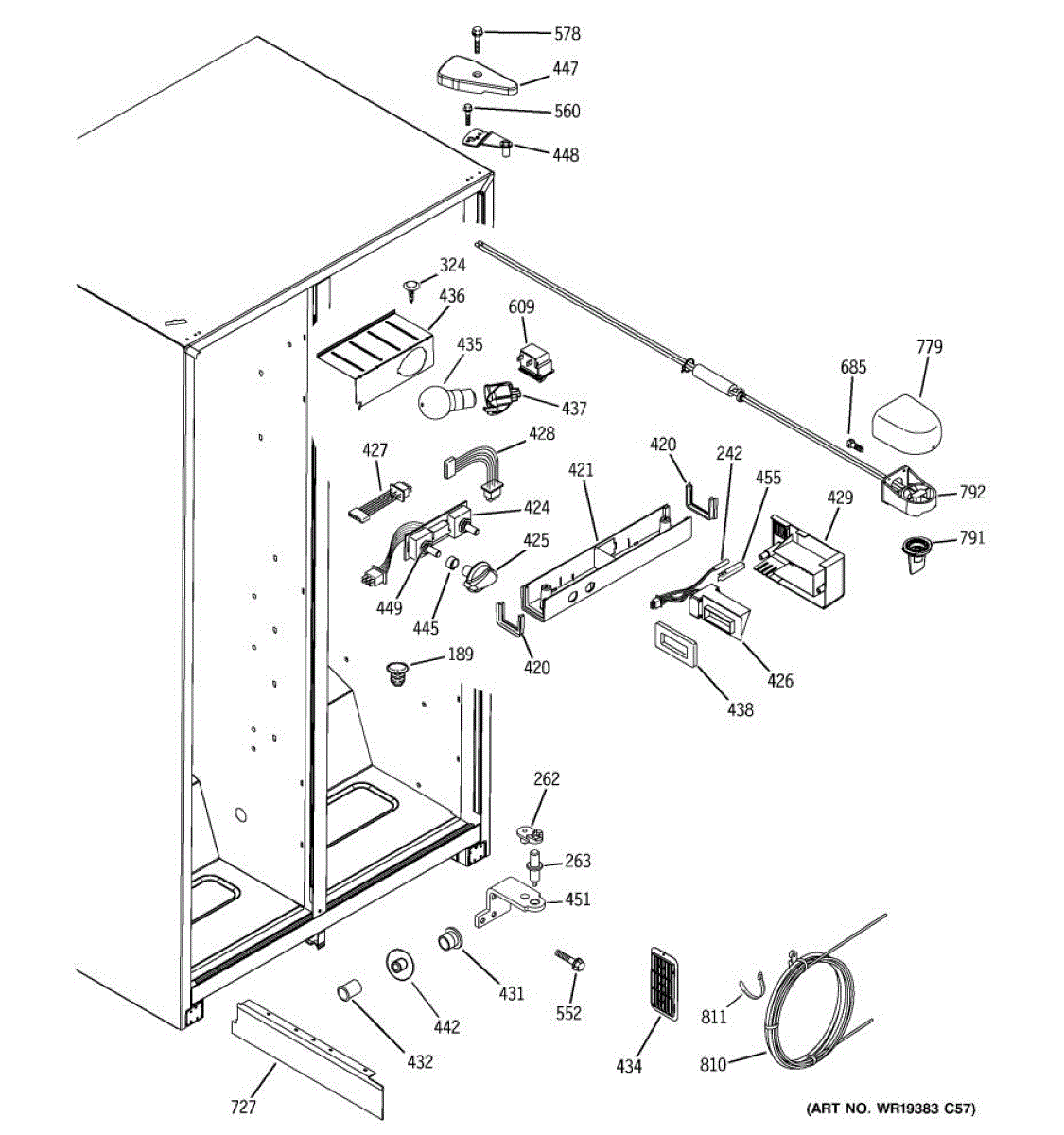 The cold water reservoir is an OEM replacement part for GE refrigerators. It serves a dual purpose, holding the supply of cold water needed for both the ice maker and water dispensing functions. This ensures that each ice cube is formed from chilled water and that cold water is always ready to be dispensed. Causes of a bad reservoir can include cracks, fractures, or leaks developing in the plastic over time due to repeated filling and draining. Mineral deposits or contamination of the water supply can also compromise performance. Symptoms of an issue include: