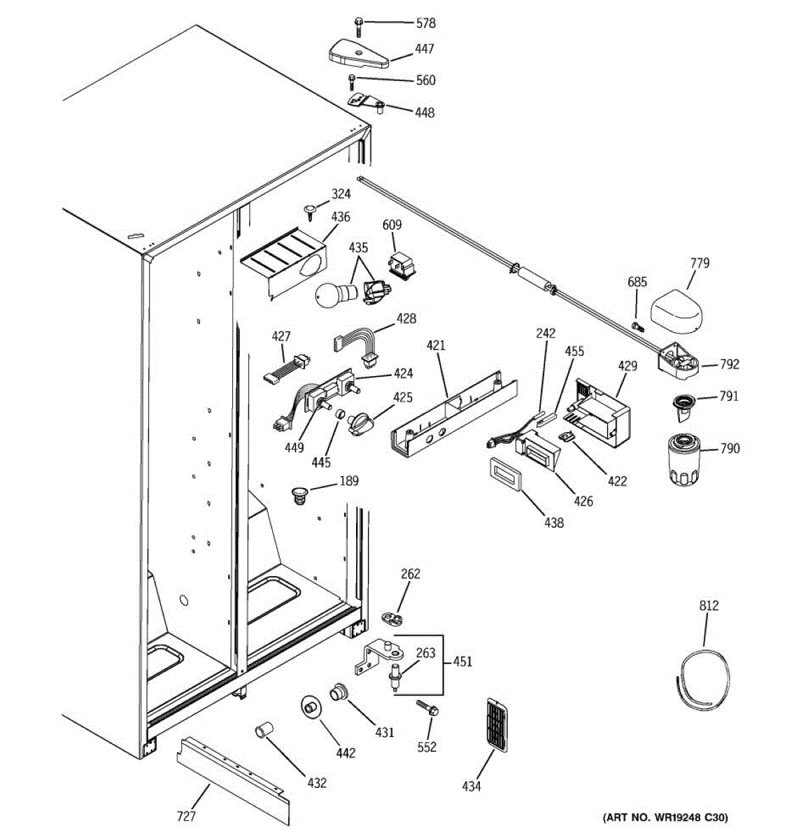 The Light Switch is an OEM replacement part for GE refrigerators. It controls the interior light, turning it on when the refrigerator door is opened and off when the door is closed. This ensures proper illumination for visibility when accessing the refrigerator's contents.