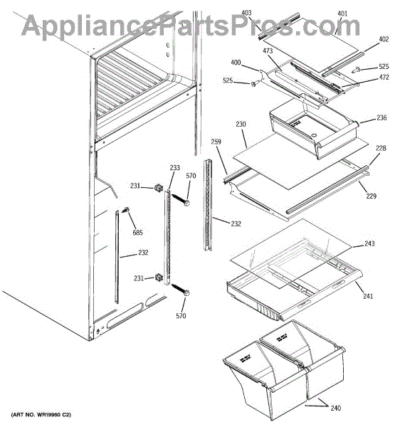 This left side snack pan slide is a genuine General Electric part, sold individually. This left side snack pan slide can be used as a replacement part for a refrigerator. This is the part on which the crisper drawer rests, and it facilitates the sliding in and out of the crisper drawer. The left side snack pan slide is made out of durable white plastic.The left side snack pan slide might have to be replaced at some point within the lifespan of a refrigerator if it is damaged to the point that it can no longer serve its function. This damage could take the form of cracks, punctures, or erosion to the plastic material as a result of general wear and tear or from a collision with a hard object that warps the component beyond functionality. If either of these things occur, the component should be removed and replaced with this genuine OEM replacement part.This is an OEM part sourced directly from the manufacturer. It is sold individually. This left side snack pan slide is compatible with the following appliance brands: General Electric and Kenmore.