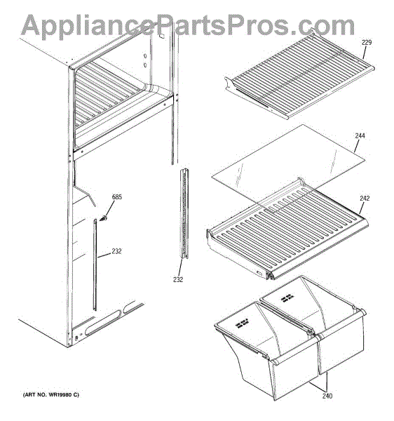 Parts for Ge HTS18BCPJLWW: 06 - Fresh Food Shelves Parts