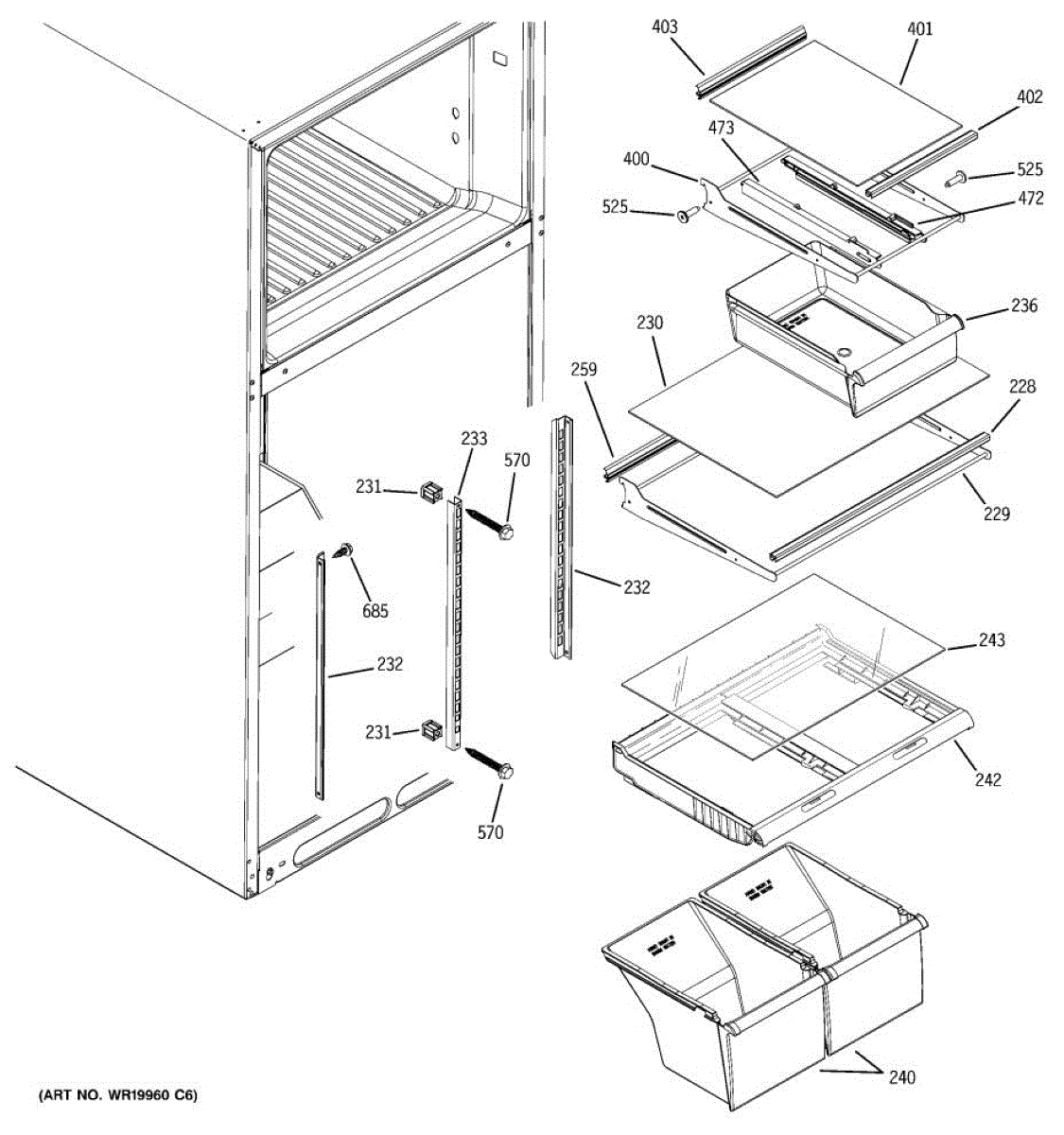 Parts for Ge HTS18IBSURWW: 06 - Fresh Food Shelves Parts