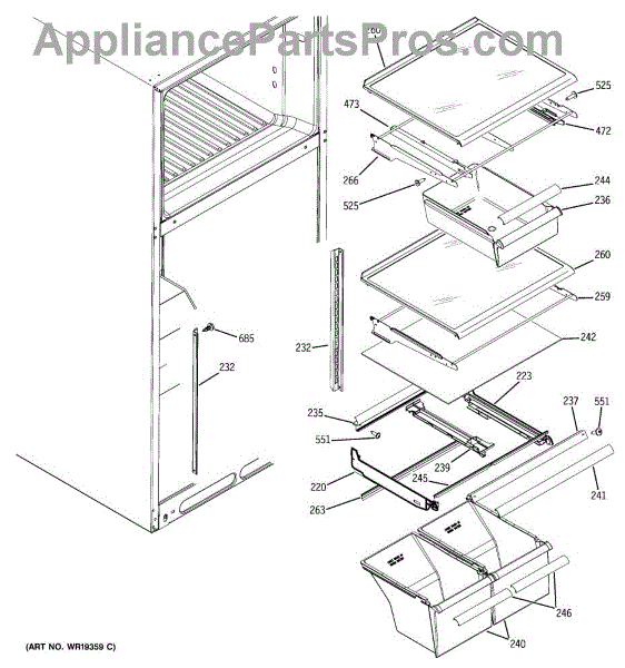 Parts for Ge HTS18JBPARWW: 06 - Fresh Food Shelves Parts