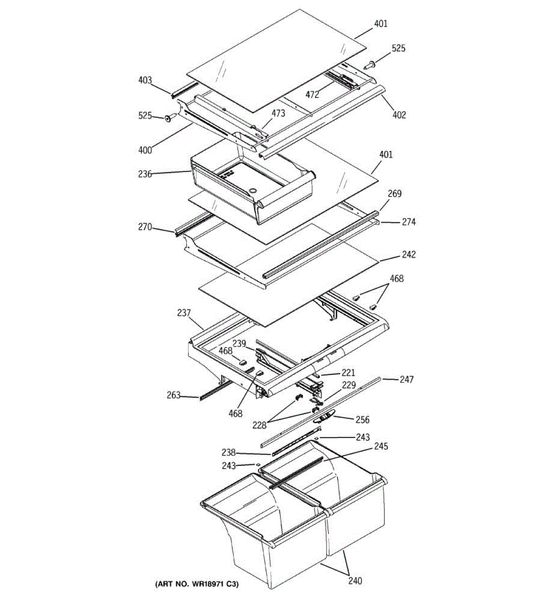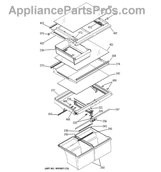 The Slide Pan Right Hand is an OEM part for GE refrigerators. This component supports and guides the movement of the refrigerator's crisper or deli drawer, allowing it to slide in and out smoothly. It ensures easy access to stored food items and helps maintain proper alignment and functionality of the drawer.