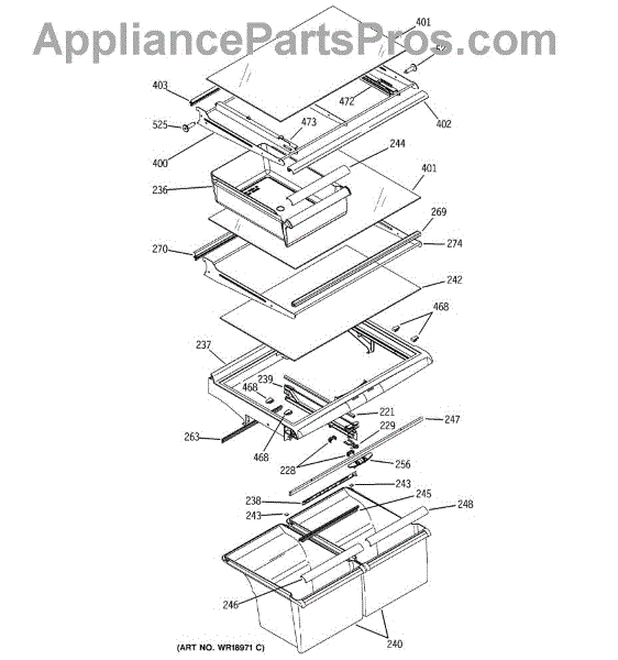 The Slide Pan Right Hand is an OEM part for GE refrigerators. This component supports and guides the movement of the refrigerator's crisper or deli drawer, allowing it to slide in and out smoothly. It ensures easy access to stored food items and helps maintain proper alignment and functionality of the drawer.