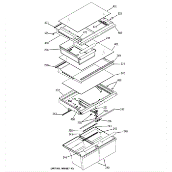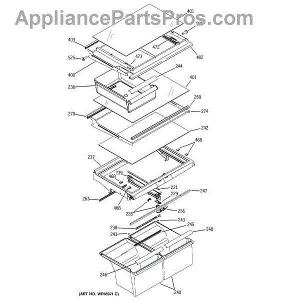 The Slide Pan Right Hand is an OEM part for GE refrigerators. This component supports and guides the movement of the refrigerator's crisper or deli drawer, allowing it to slide in and out smoothly. It ensures easy access to stored food items and helps maintain proper alignment and functionality of the drawer.