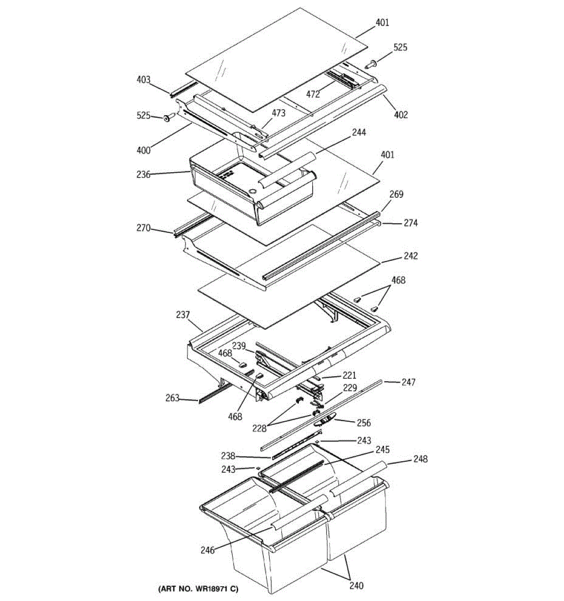 The Slide Pan Right Hand is an OEM part for GE refrigerators. This component supports and guides the movement of the refrigerator's crisper or deli drawer, allowing it to slide in and out smoothly. It ensures easy access to stored food items and helps maintain proper alignment and functionality of the drawer.