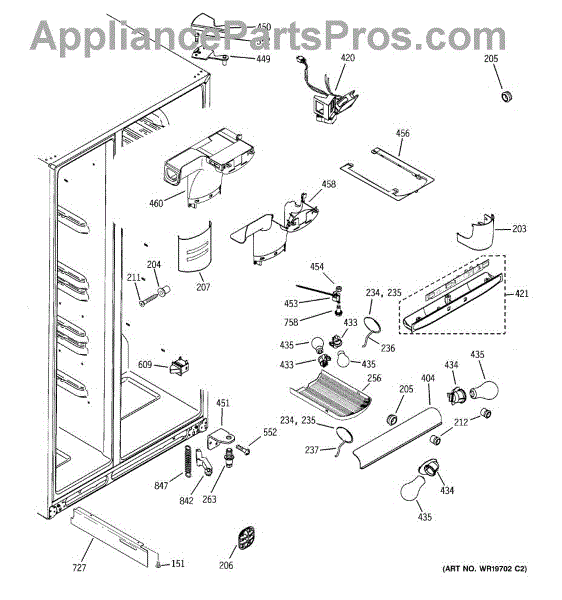 The Refrigerator Damper Assembly is an OEM part for GE refrigerators. It regulates the flow of cold air from the freezer compartment to the refrigerator, ensuring proper temperature control within the fridge.