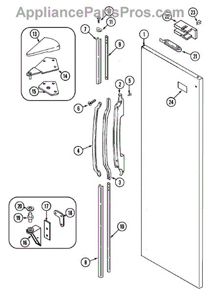 Parts for Hoover RSBS24D010: 06 - Fresh Food Outer Door Parts