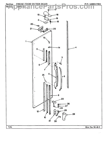 Parts for Maytag ERSW22A / AM35B: 06 - Fresh Food Outer Door Parts