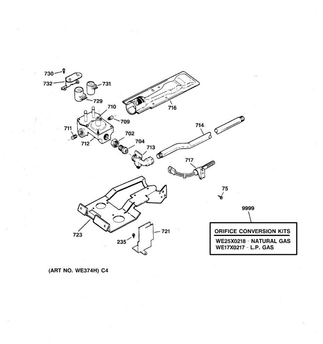 This GE replacement part is also compatible with Hotpoint, RCA, and some Kenmore models. For LP to natural gas conversion kit, order part number WE25X218.