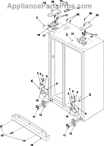 Secures the lower right door hinge on your refrigerator. Replace if bracket is cracked, broken, or causing door misalignment and sagging issues.