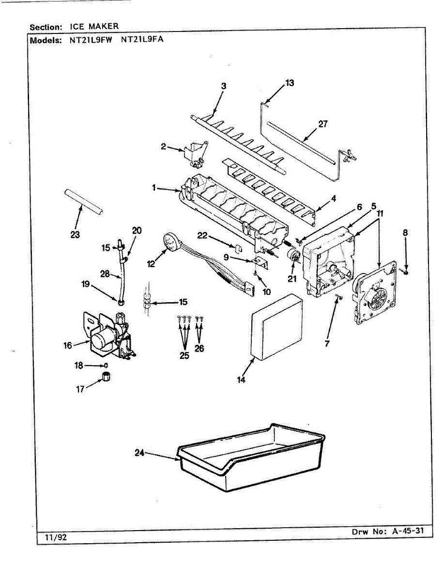 Ice maker leaking or shutoff arm broken? This fill cup and bearing assembly directs water into the mold and supports the arm. 15-minute DIY fix.