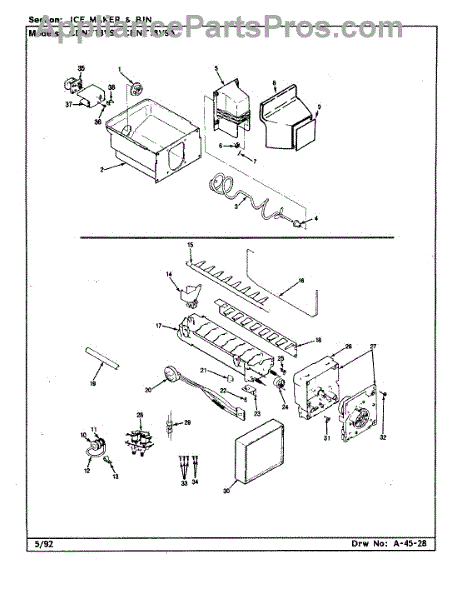Ice maker leaking or shutoff arm broken? This fill cup and bearing assembly directs water into the mold and supports the arm. 15-minute DIY fix.