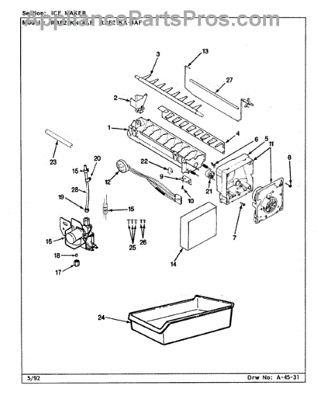 Ice maker leaking or shutoff arm broken? This fill cup and bearing assembly directs water into the mold and supports the arm. 15-minute DIY fix.