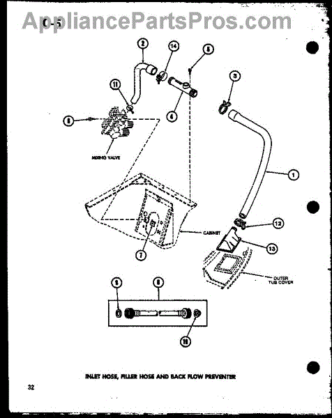 Secures washing machine hoses to prevent leaks in the water system. Replace if damaged, corroded, or connections are loose. Verify fit by part number.