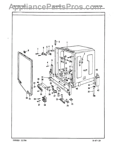 This factory screw secures appliance components to their mounting points. Replace missing, worn, or stripped hardware to restore a tight fit, proper alignment, and quieter operation across the affected assembly.