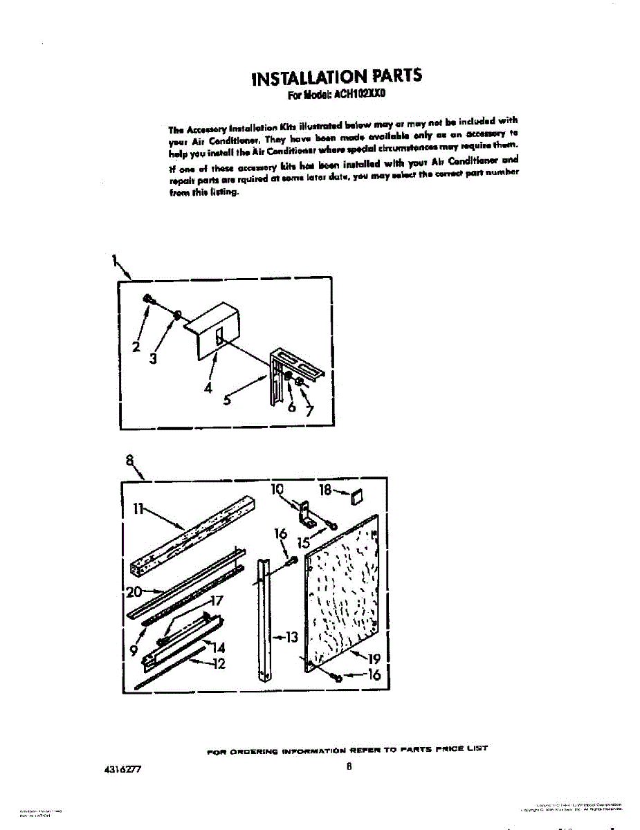 Parts for Whirlpool ACH102XX0: 06 - Installation Parts