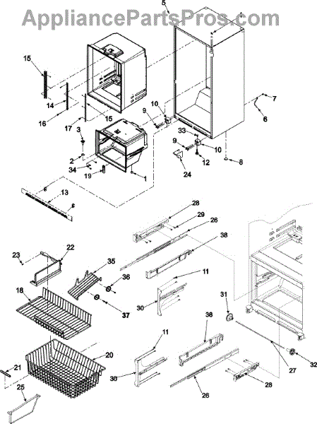 This cradle supports and secures the freezer basket inside the compartment, keeping the basket properly aligned for smooth sliding and storage. Fits the OEM mounting locations and restores original basket support. What it does: